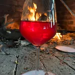 Ce logement comprend un coin repas extérieur avec une cafétière/théière électrique, un réfrigérateur et de la verrerie.